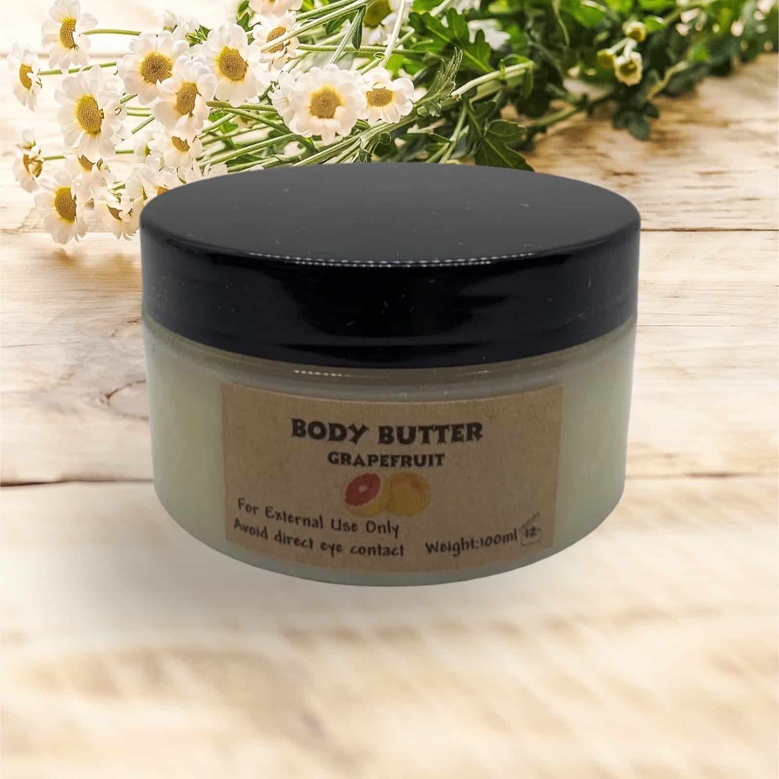 Rich and creamy body butter is blended with organic shea and cocoa butters and refreshing Grapefruit Essential Oil.